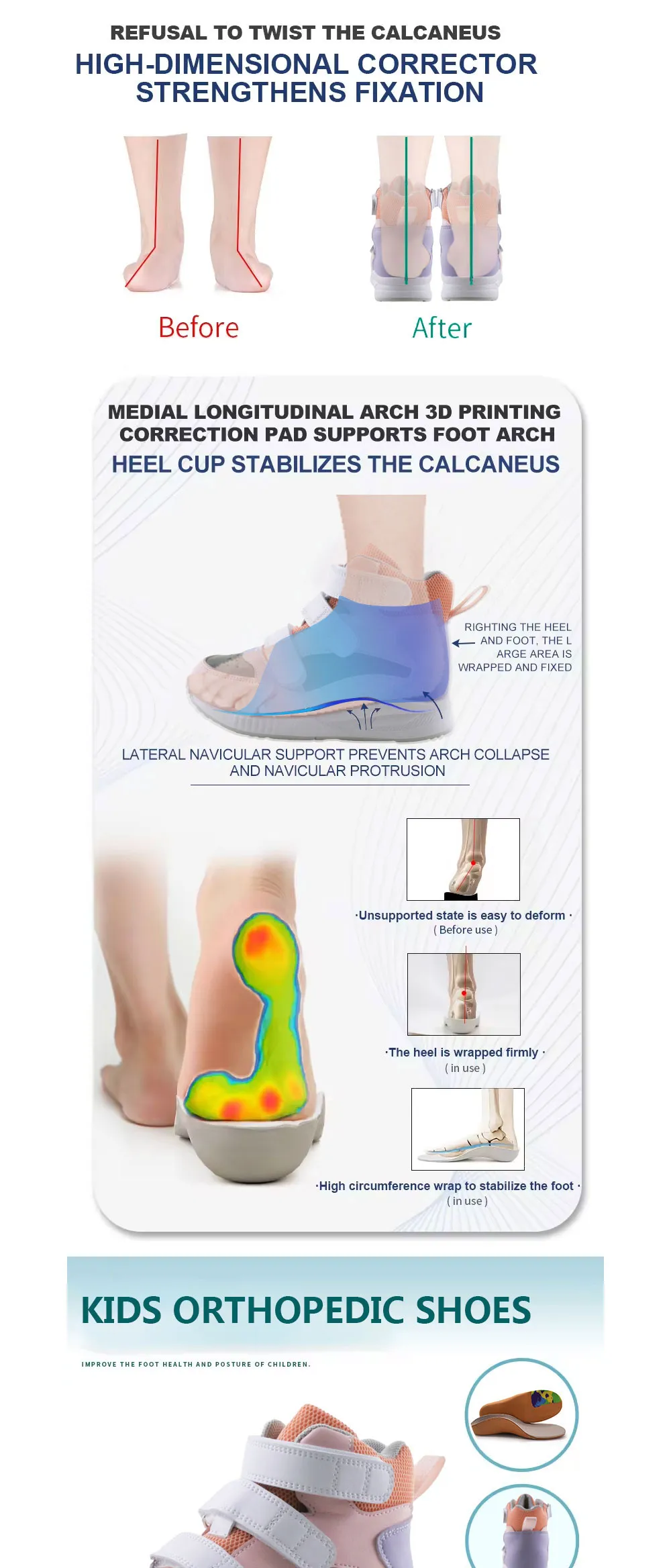 Every pair is built based on orthopedic principles — featuring arch support, medial and lateral stabilizers, and reinforced heels. They help correct mild deformities such as flat feet, in-toeing, and valgus, improving walking efficiency and posture.