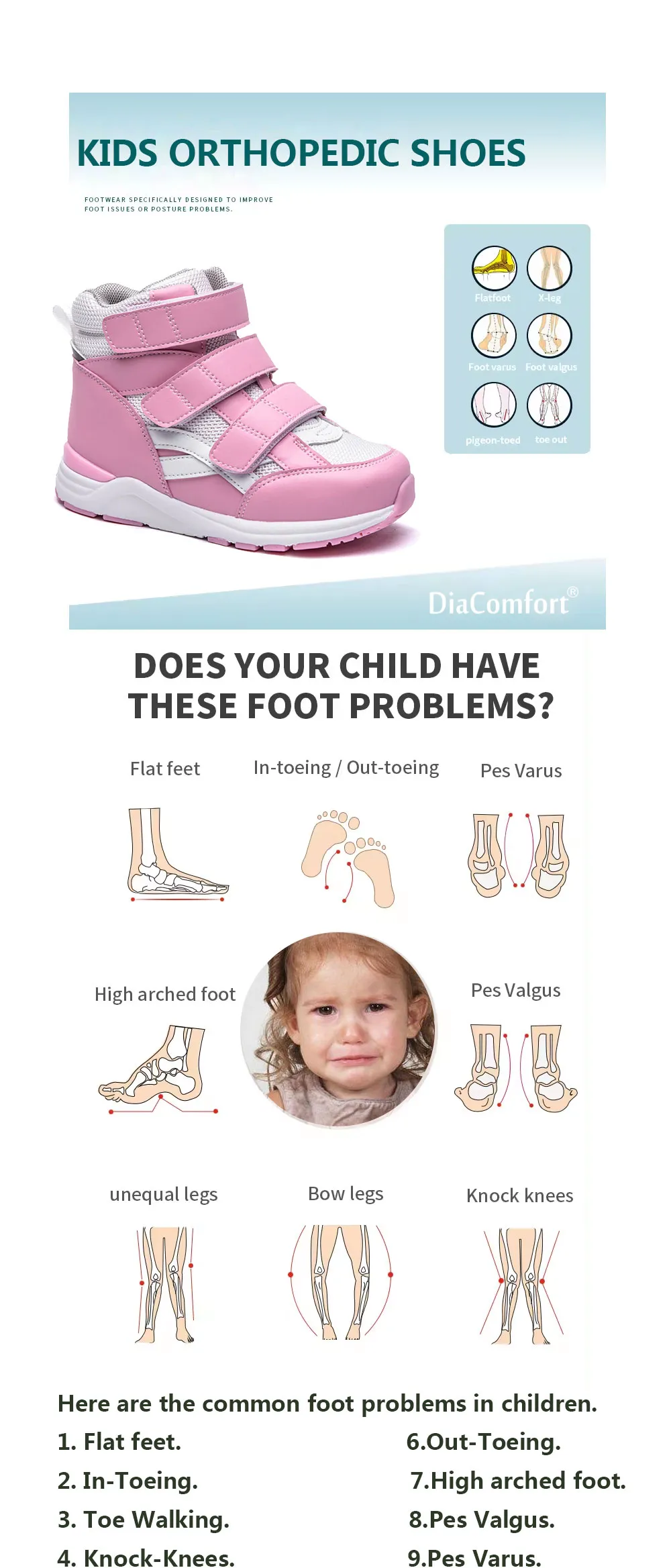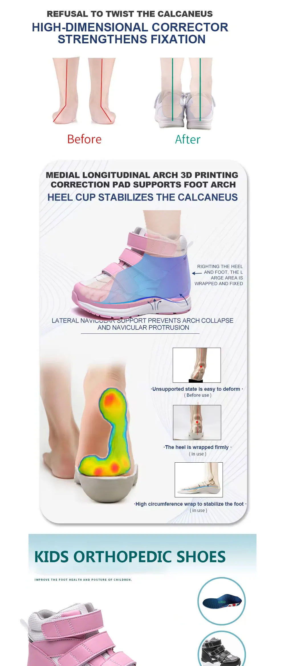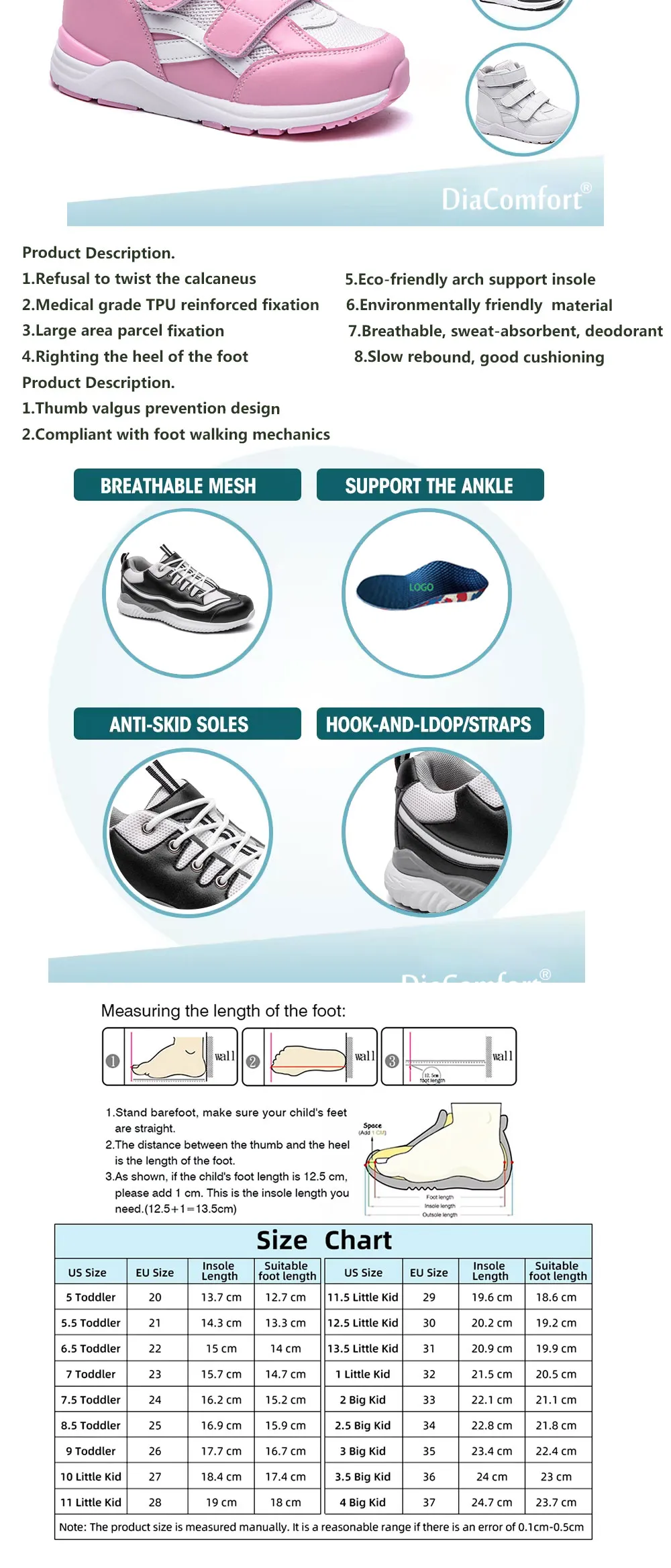 Our orthopedic shoes come with fully adjustable straps or Velcro closures, allowing a customized fit for different foot shapes. This design ensures secure wear without pressure points — perfect for kids who are active all day.