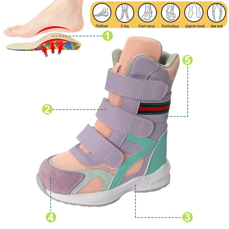 High-top structure stabilizes the ankle, helping guide proper foot alignment and walking posture.