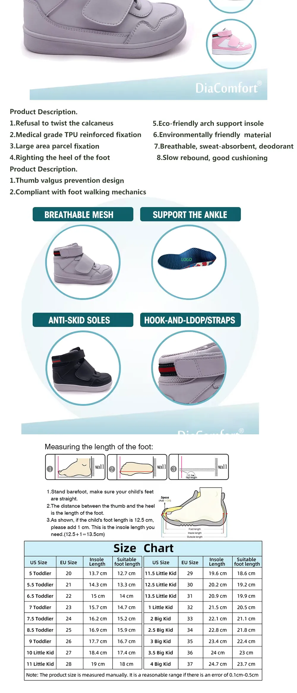 Each pair features a wide, stable base and shock-absorbing outsole to improve balance and coordination. Ideal for children who are learning to walk or have slight gait issues, these shoes promote natural movement and confidence with every step.